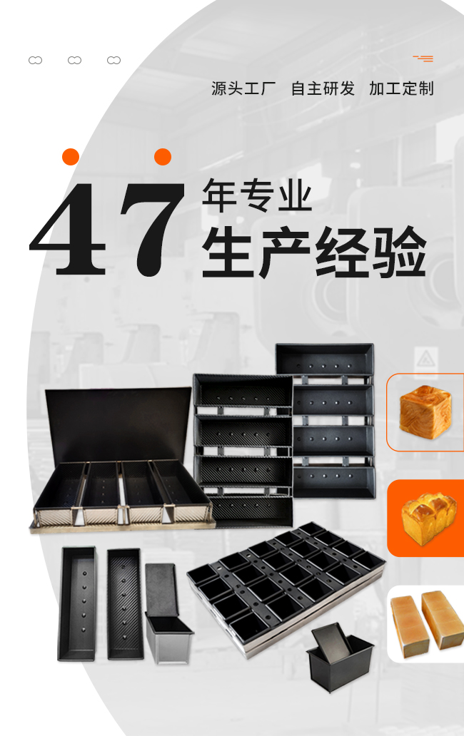 主要產(chǎn)品:鋁合金一體成型蛋糕模具,冷軋板沖壓不粘蛋糕、面包模具,鍍鋁板不粘蛋糕、面包模具,不銹鋼烤盤模具,各種規(guī)格吐司、法棍、漢堡、平盤產(chǎn)品,以及多類型食品機(jī)械等。為更精準(zhǔn)地滿足市場需求,企業(yè)依托自身優(yōu)勢,為廣大合作伙伴提供產(chǎn)品個性化訂制服務(wù)。